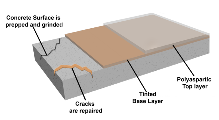 Boring gray concrete is out and stained concrete is in. With our stains, you can get a upscale look at a fraction of the price. Stains penetrate your concrete to give it a unique pattern. There are many color options to choose from to best suit your taste. Finalized by a clear Polyaspartic clear coat that is 3X harder than standard epoxy sealers.